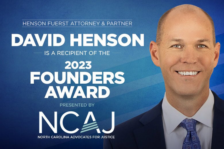 Henson Fuerst Attorneys is proud to announce that partner Attorney David Henson has been awarded the Founders Award by the North Carolina Advocates for Justice (NCAJ) during the organization’s 2023 convention in Charlotte.